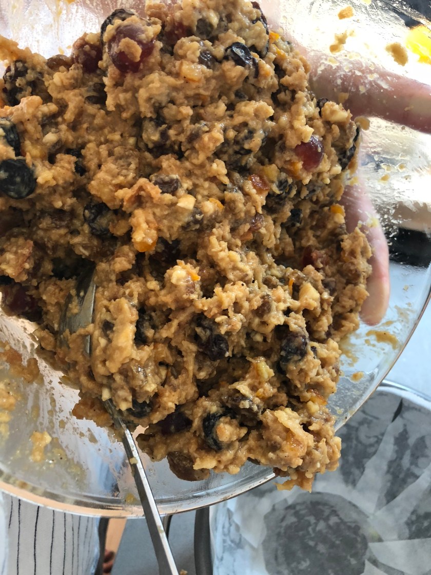 Add the breadcrumbs, brown sugar, and the dried fruit mix.